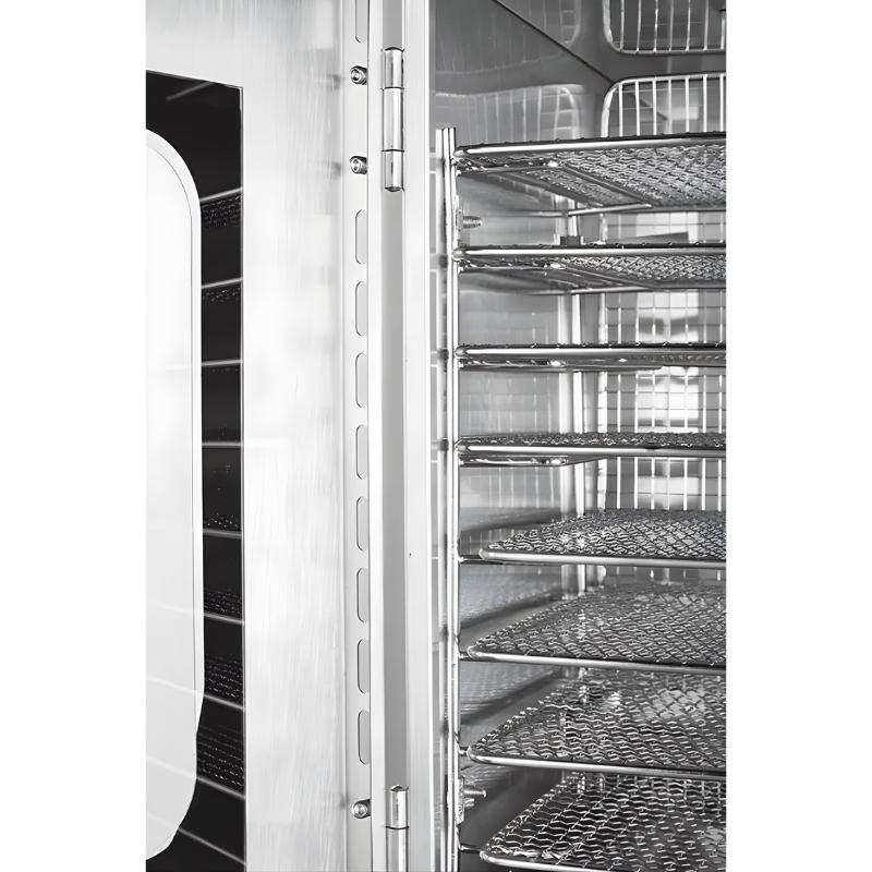 Available in 6 to 32-tray capacities, this dehydrator adapts to different business needs. Additionally, it operates on a standard 220V power supply, making installation simple and convenient.