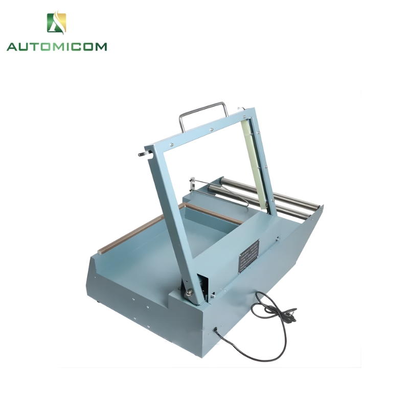 Next, operators place each product into the shrink film, and the product seals and cuts the film precisely according to product dimensions. This accurate cutting method reduces film waste and ensures clean, professional packaging results.Flexible Standalone or Integrated Operation