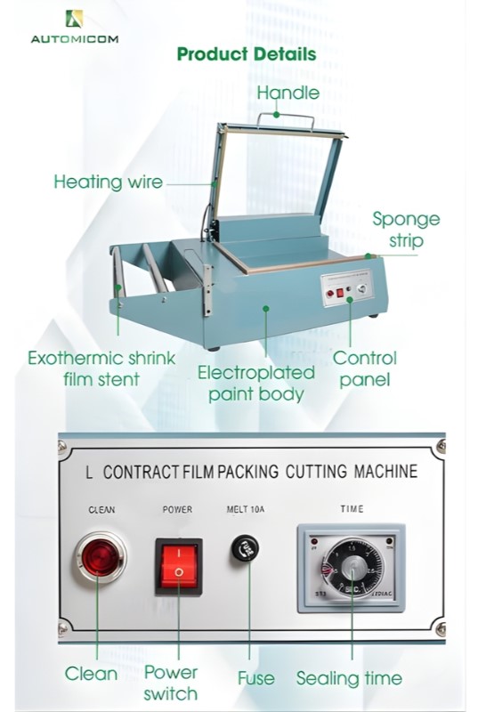 The L bar cutter is a high-quality L-type sealing and cutting machine designed for efficient shrink film packaging. First, this L bar cutter allows operators to place products into shrink film and apply pulse fusion sealing and cutting to achieve accurate loose packaging. Next, the sealed items move to a heat shrink machine, where infrared heat creates a tight and professional finish. Moreover, the L bar cutter works as a front-end solution in shrink packaging lines and integrates smoothly with shrink sealing and heat shrink machines.