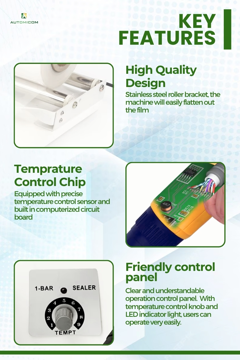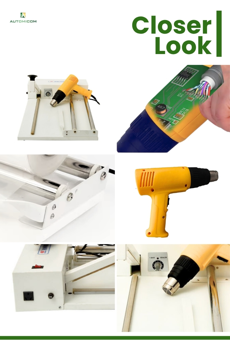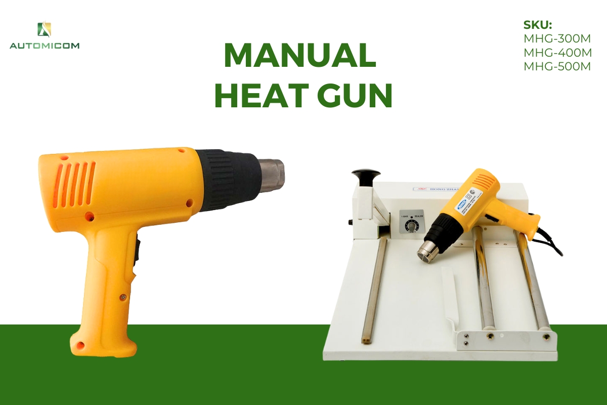 Firstly, the manual heat gun quickly shrinks PVC or polyolefin films around various products, creating tight and secure packaging for retail and storage. In addition, it bundles multiple items together efficiently, helping businesses maintain a professional look and reduce handling time.