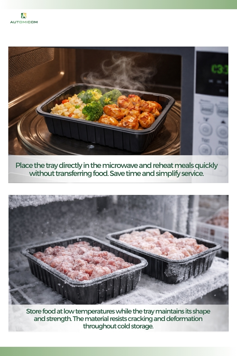 First, place the tray directly in the microwave to reheat meals quickly and conveniently. Save time and reduce extra handling in busy kitchens or retail environments. - Reliable Freezer Performance